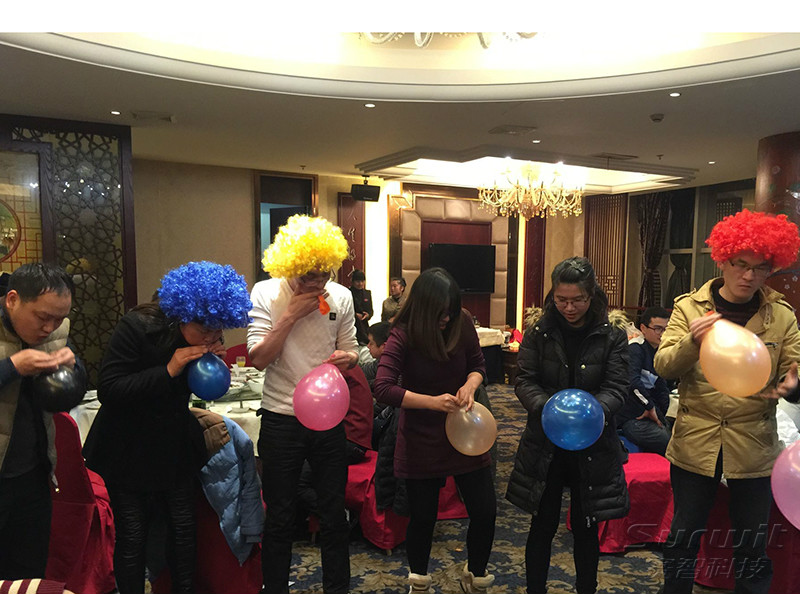 年夜飯席間,市場部精心準(zhǔn)備了不少小游戲。有吹牛皮比賽、尋寶gogogo、幸運(yùn)桌桌樂.......再加上微信紅包雨,讓賽智的小伙伴們,玩得開心,嗨到盡興!特別是最后的自拍合影,小伙伴們一起嘟嘴,翻白眼,舉杯露笑臉,連平時(shí)不茍言笑的同事也是萌萌噠!